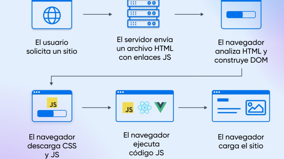 Cuando un usuario abre una aplicación desarrollada en React, el navegador ejecuta una serie de pasos que permiten cargar la interfaz y mostrar los datos en pantalla. Este proceso ocurre en pocos segundos y es fundamental para el funcionamiento de las aplicaciones modernas.
