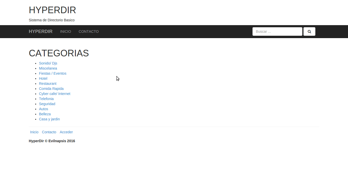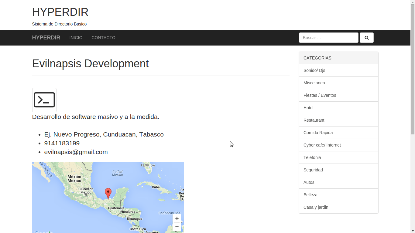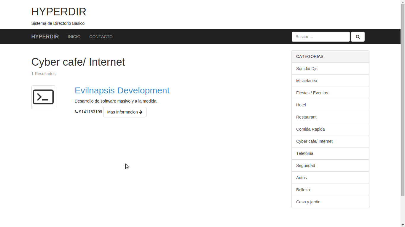 HyperDir es un sistema de directorio básico desarrollado con PHP y MySQL, puedes agregar dirección o domicilio, teléfono y email, también puedes organizar anuncios por categorías, agregar logo o imagen, mapa de Google Maps y mucho mas.
