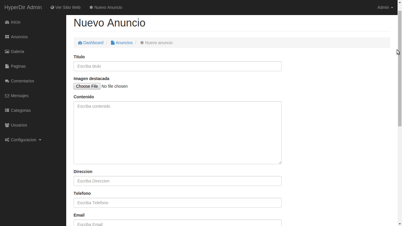 HyperDir es un proyecto que te pude servir para crear tu propio sitio web de anuncios gratis o pagados, también te puede servir como proyecto escolar, proyecto personal, etc.